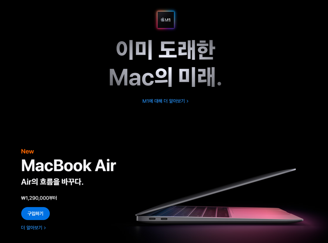 보기만 해도 마음이 심쿵, 충동 구매를 불러일으키는 저 위대한 맥의 자태를 보시라! 디자인에 심쿵하지만 가격을 보면 철컹하죠? 그럼에도 우리는 [구입하기] 버튼을 딸깍 누릅니다.