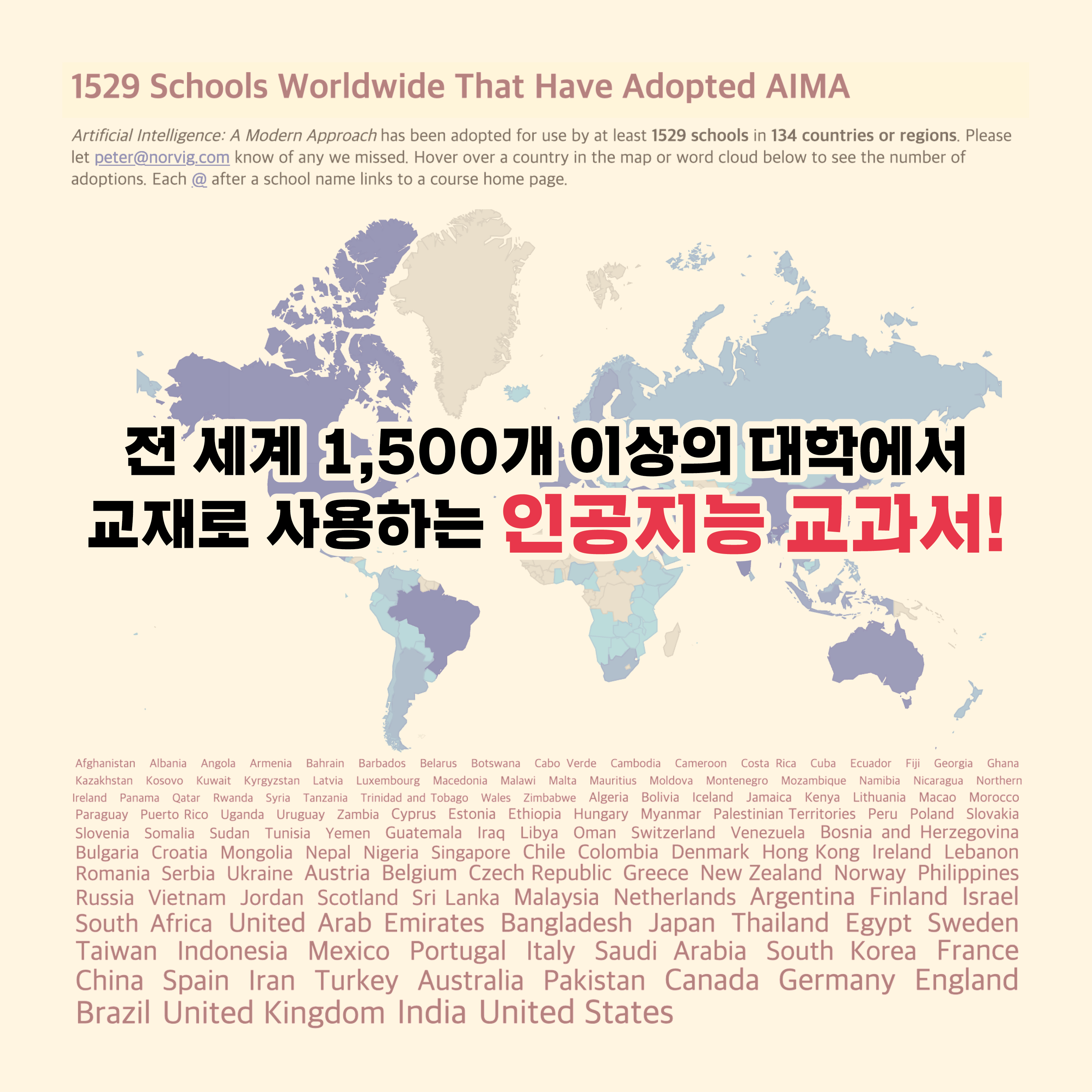전 세계 교재채택 대학 목록: http://aima.cs.berkeley.edu/adoptions.html