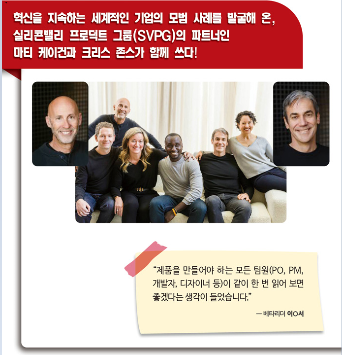 제품, 특히 IT 제품 기획자의 필독서가 된 《인스파이어드(전면개정판)》에 이어 제품팀의 리더십과 혁신, 협업 방법을 다룬 《임파워드》(부제: 평범한 사람들이 만드는 특별한 제품)가 출간됩니다. 이번에는 《인스파이어드(전면개정판)》의 저자 마티 케이건(Marty Cagan) 외에 실리콘밸리 제품 그룹(SVPG)의 훌륭한 파트너인 크리스 존스(Chris Jones)가 함께 참여하였습니다.