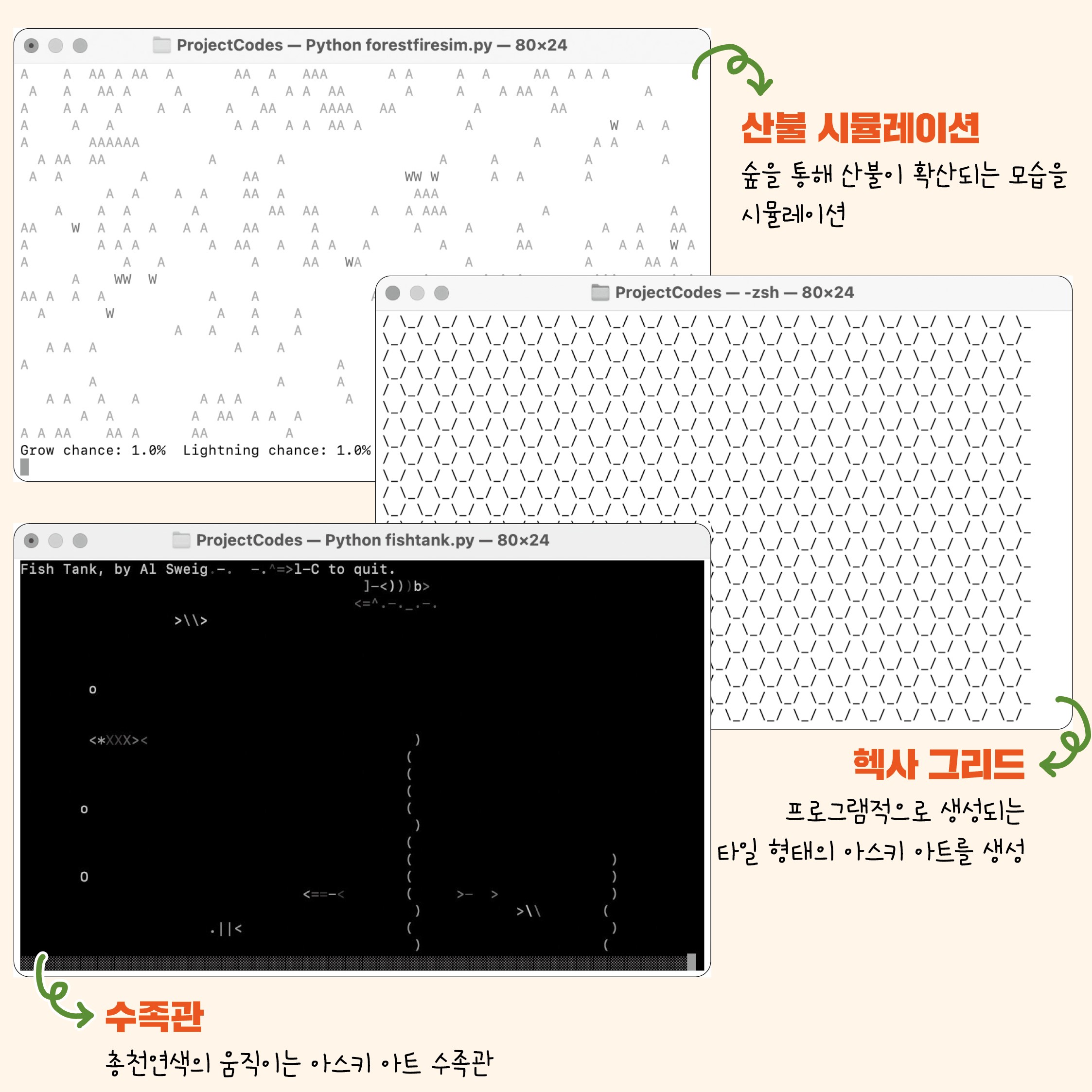 - 다수의 프로그램 - 이 책은 보드게임, 카드 게임, 디지털 아트워크, 시뮬레이션, 숫자 퍼즐, 미로 찾기, 유머 프로그램 등 81개의 프로그램을 담고 있습니다. 종류도 다양하고 가짓수가 많은 만큼 이 중에 여러분의 흥미를 끌어 학습이 한층 수월하게 느껴질 만한 것도 분명 존재할 것입니다.