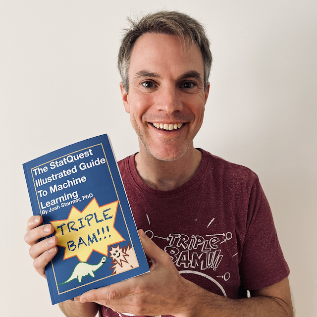 바로 유튜버 조시 스타머의 StatQuest 강의입니다! 머신러닝을 공부하시는 분들은 아마 익숙하실 텐데요, 현재 구독자 87만 명을 보유한 조시 스타머는 복잡한 머신러닝 알고리즘을 작게 쪼개 직관적인 예시와 그림으로 설명합니다. 개념을 글로 요약하는 대신 혁신적인 StatQuest 방식으로 설명하죠. StatQuest가 대체 뭐냐고요? 이건 그림으로 보여드릴 수밖에 없겠네요.