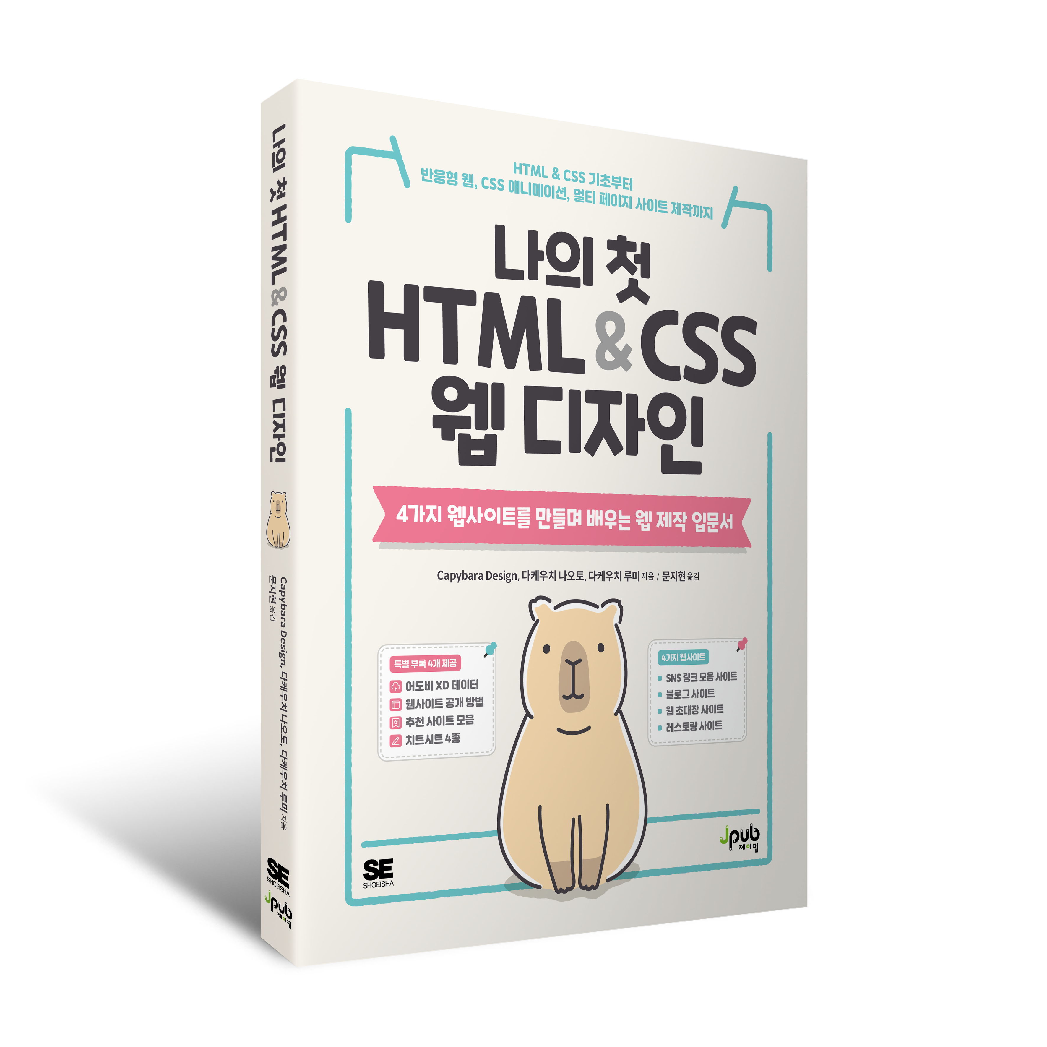 웹 제작을 전혀 몰라도 이 책 한 권이면 HTML과 CSS의 기본을 확실히 익힐 수 있다. 귀여운 만화와 풍부한 일러스트로 보는 재미까지 더했다. 멋진 웹 디자인의 SNS 링크 모음 사이트, 블로그 사이트, 웹 초대장 사이트, 레스토랑 사이트를 따라 만들면서 기초적인 내용은 물론 Flexbox 레이아웃, CSS 그리드 레이아웃, 반응형 웹 디자인, CSS 애니메이션까지 배운다. 부록으로는 웹사이트 공개 방법, 제작을 도와주는 추천 사이트 모음, 치트시트, 사이트의 샘플 디자인 XD 데이터를 제공한다.