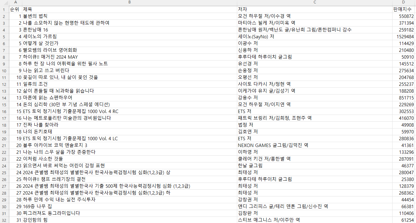 위 영상은 YES24의 베스트셀러 페이지에서 순위, 도서 제목, 저자, 판매지수를 크롤링하고, 바로 데이터를 엑셀에 저장하는 모습입니다. 무려 250개가 넘는 데이터를 크롤링하는데 걸리는 시간이 불과 45초입니다. 사람이 일일이 수집하고자 했다면 불가능했을 일이죠. 코딩의 힘 없이, 순전히 드래그 앤 드롭으로 이 자동화를 구축할 수 있었습니다. 놀랍지 않나요?