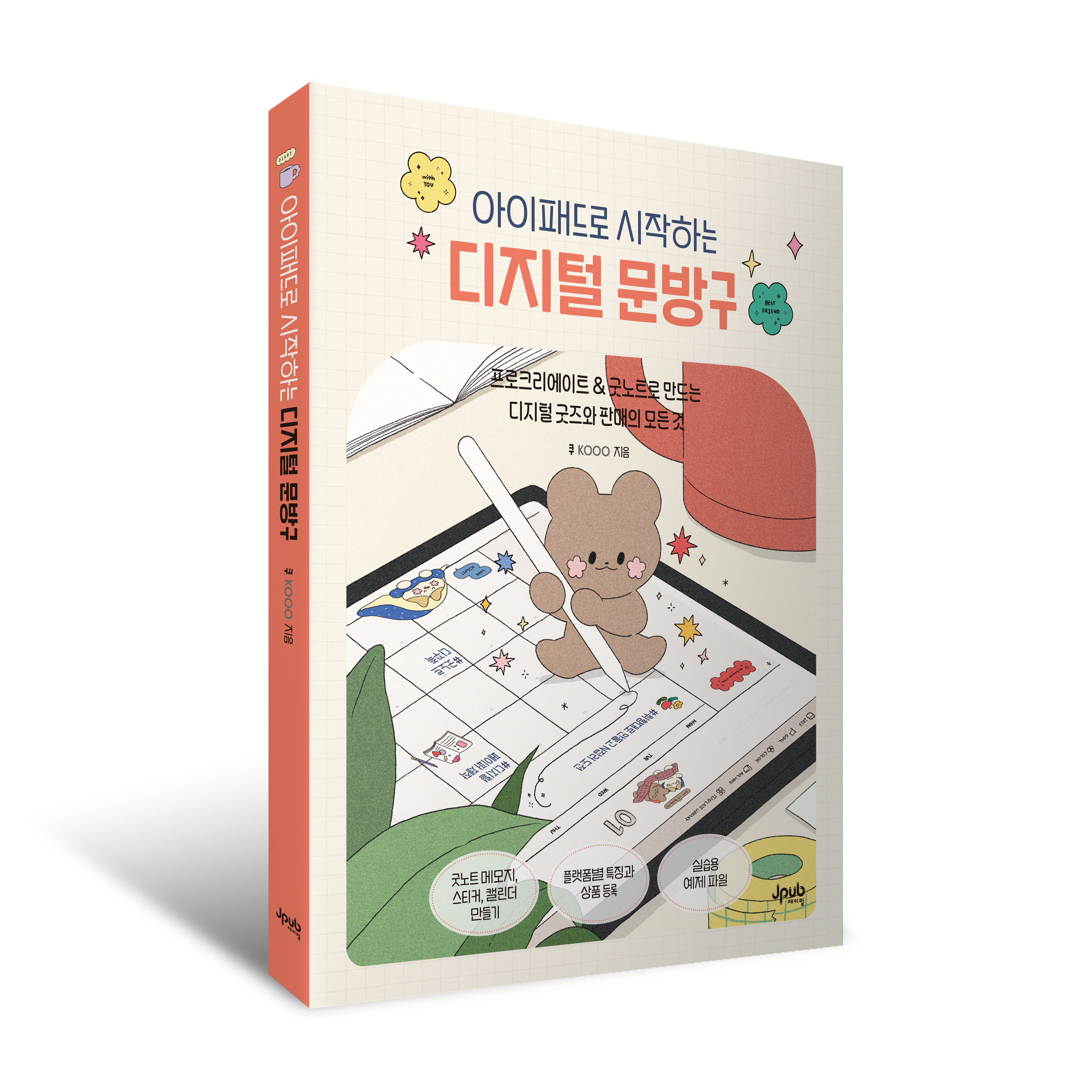 예비 디지털 굿즈 사장님만을 위한 책이 출간되었다. 이 책은 아이패드 스테디셀러 앱인 프로크리에이트와 굿노트를 활용해 디지털 플래너와 스티커를 제작하고 온라인 플랫폼에서 판매하는 방법을 소개한다. 다양한 플랫폼에 디지털 굿즈를 입점하는 구체적인 가이드를 전하고 있어 자신에게 잘 맞는 곳을 선택할 수 있다. 특히 초심자도 쉽게 따라 할 수 있도록 디지털 메모지, 데일리 스티커, 캘린더 등을 제작할 때 필요한 기능을 예제를 따라 하며 배울 수 있도록 구성했다. 또한, 굿노트 기능을 인스타그램에 활용하는 방법과 초보 디지털 다꾸러를 위한 팁까지 엄선해 담았다. 나만의 센스를 발휘해 취향이 듬뿍 담긴 디지털 문방구를 시작해 보자.