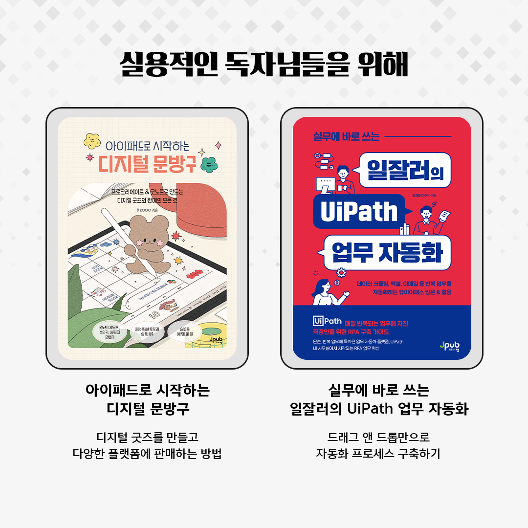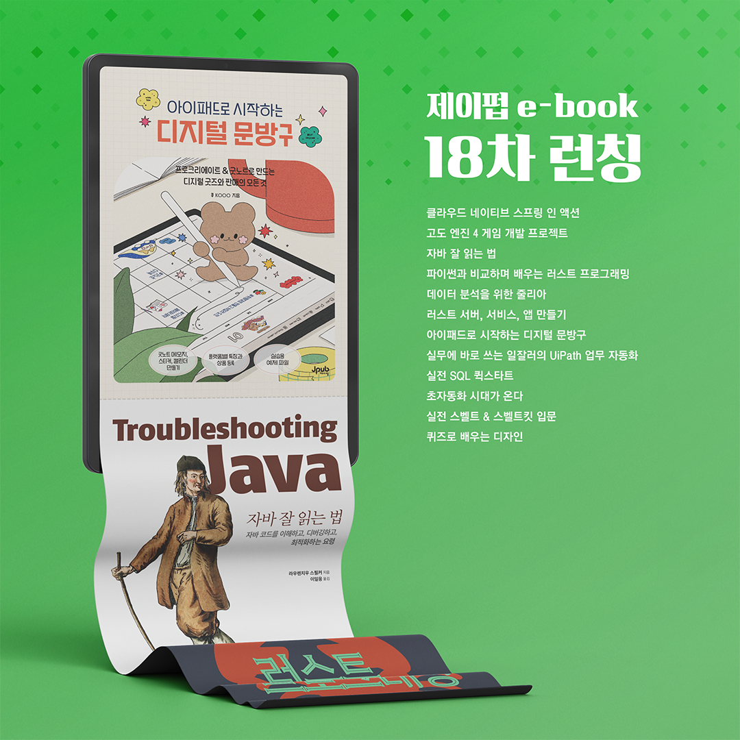 아래에서 저희 제이펍이 펴낸 전자책 전체 리스트, 꼭 확인해 보세요!