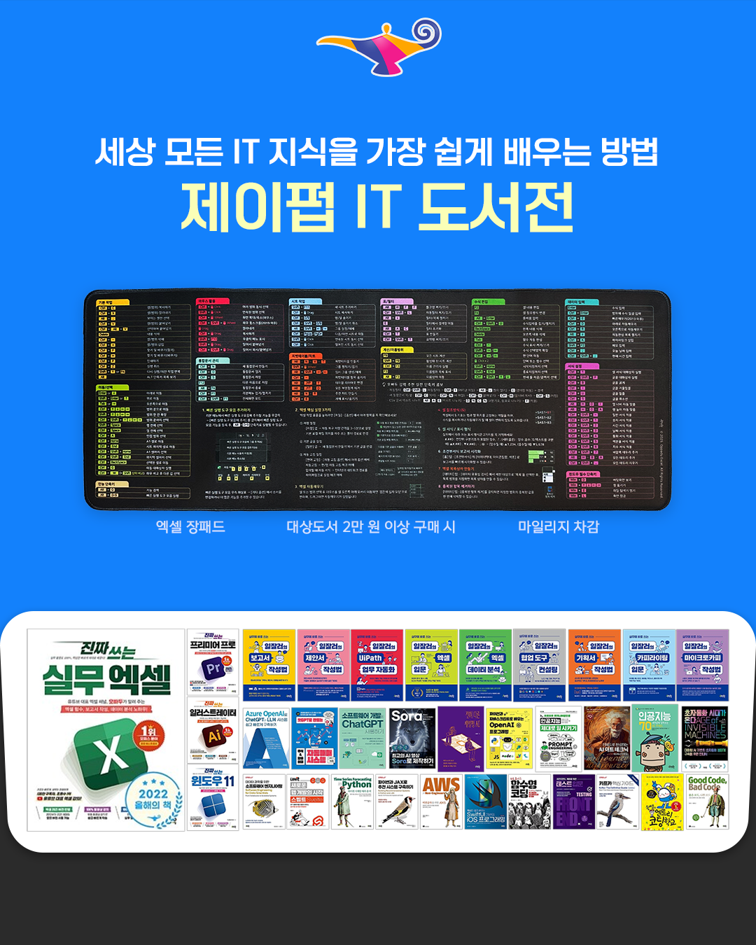 IT 지식을 쌓고 싶은 분들을 위해, 제이펍 IT 도서전이 알라딘에서 진행 중이에요! 대상 도서 2만 원 이상 구매 시, 한정판 제이펍 엑셀 장패드를 드립니다.🖱️