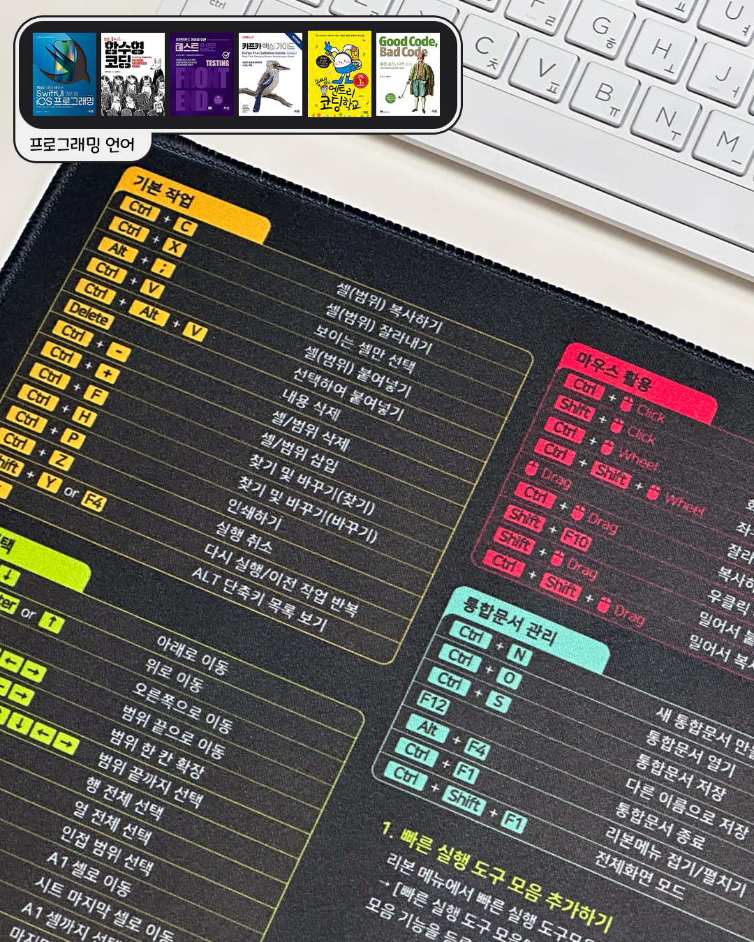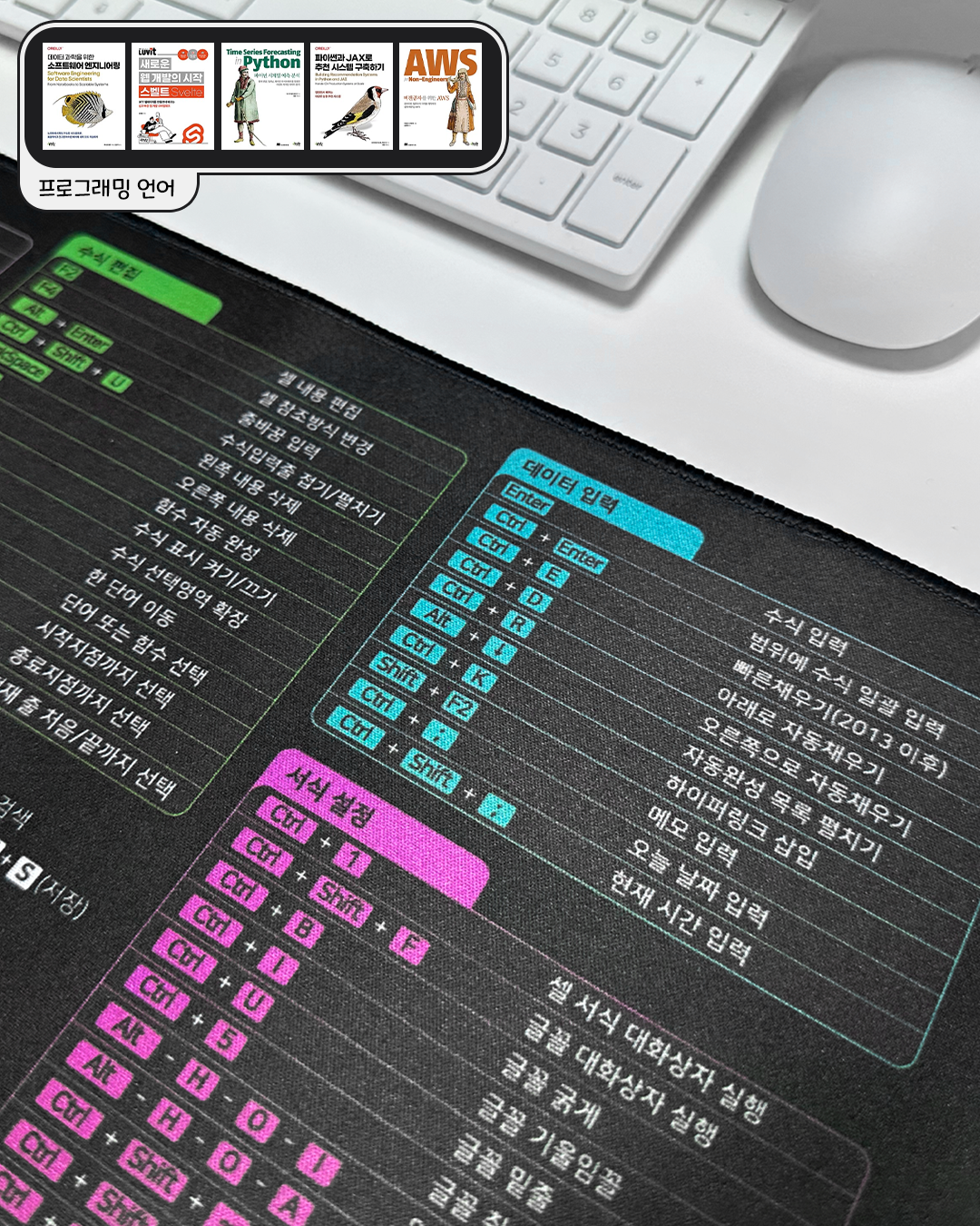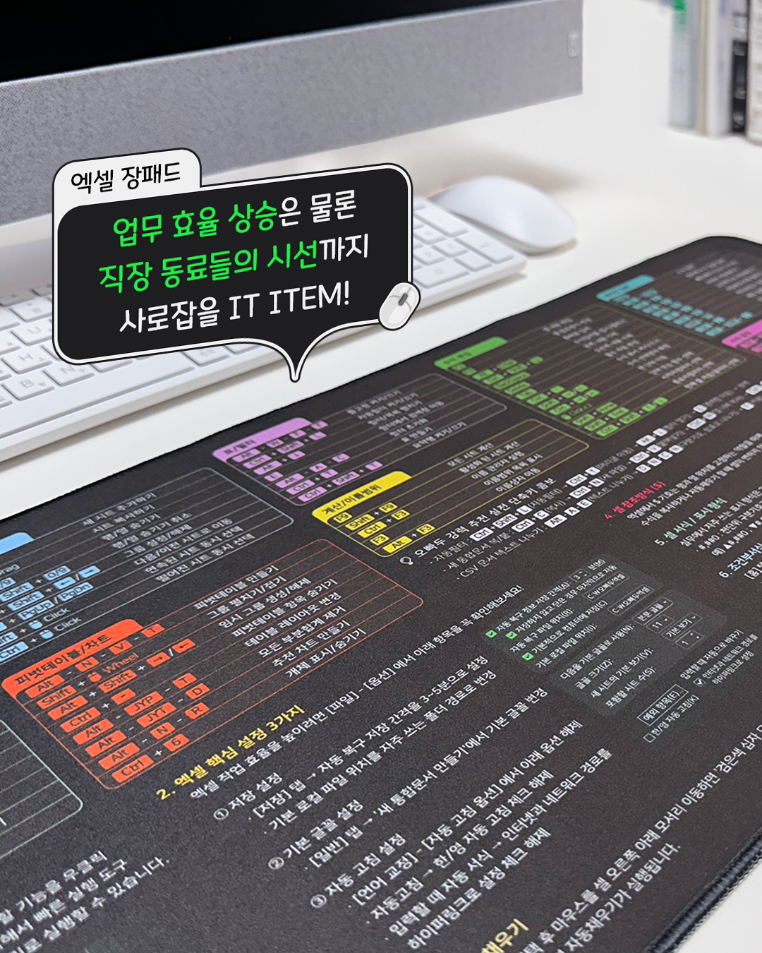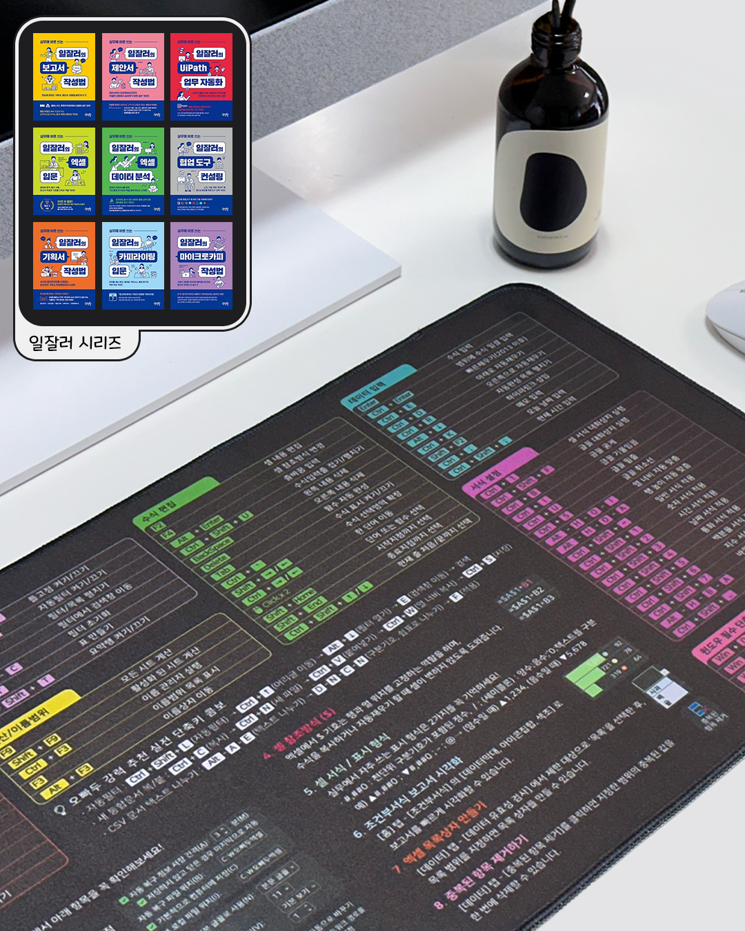 베스트셀러 《진짜 쓰는 실무 엑셀》의 오빠두엑셀 저자님이 심혈을 기울여 기획한 이번 엑셀 장패드는 필수 단축키부터 강력한 실전 단축키 콤보, 효율을 높여줄 핵심 설정 3가지까지 완벽하게 담겨 있답니다. 깔끔하고 고급스러운 디자인으로 데스크 스타일까지 업그레이드할 수 있는 건 덤! 책상에만 올려두어도 업무 능률이 쑥쑥 올라가고 회사에서도 인정받는 잇아이템이라고 할 수 있죠.
