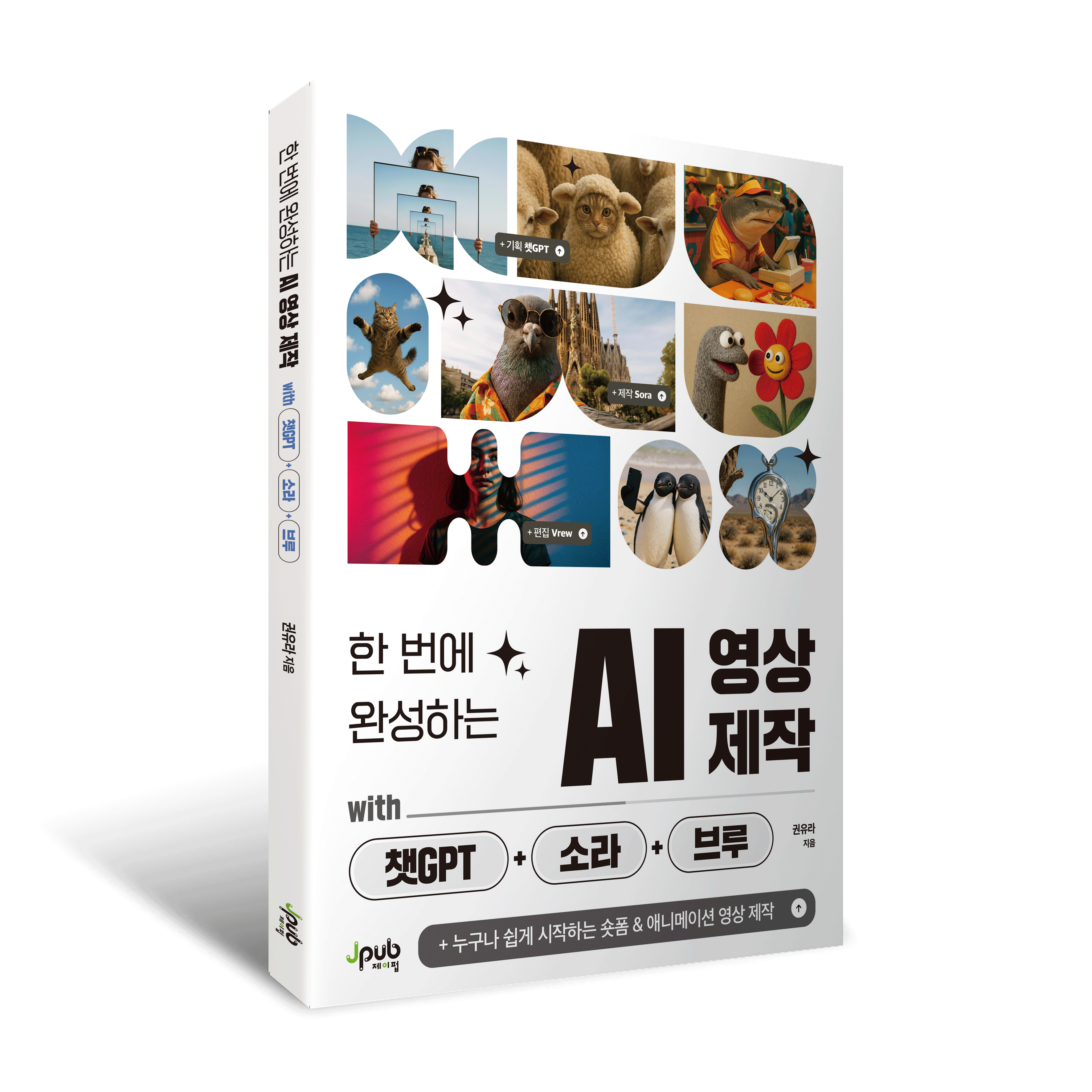 이 책의 가장 큰 장점은 챗GPT·소라·브루를 연결해 영상 하나를 기획부터 편집까지 완성해 나가는 과정을 따라 하기 쉬운 구성으로 담았다는 점입니다. 프롬프트를 어떻게 짜야 할지부터, 어떤 순서로 작업하면 자연스럽고 완성도 있는 영상이 나오는지까지 단계별로 아주 친절하게 설명하고 있습니다. 특히 애니메이션 영상과 유튜브 쇼츠, 두 가지 실전 프로젝트를 중심으로 프롬프트 작성부터 영상 스타일 유지, 자막 편집까지 전 과정을 꼼꼼하게 다루어 책의 완성도를 높였습니다.