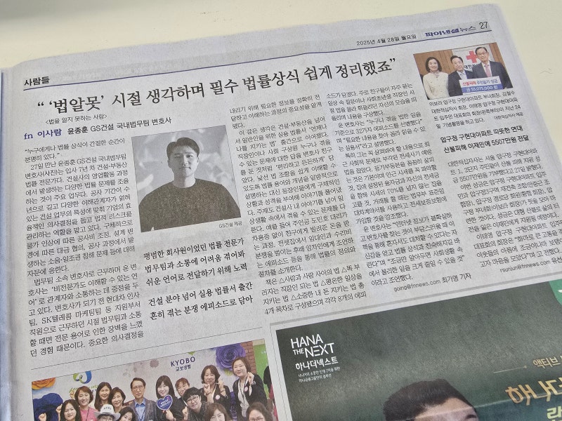 윤종훈 GS건설 국내법무팀 변호사평범한 회사원이었던 법률 전문가법무팀과 소통에 어려움 겪어봐쉬운 언어로 전달하기 위해 노력건설 분야 넘어 실용 법률서 출간흔히 겪는 분쟁 에피소드로
